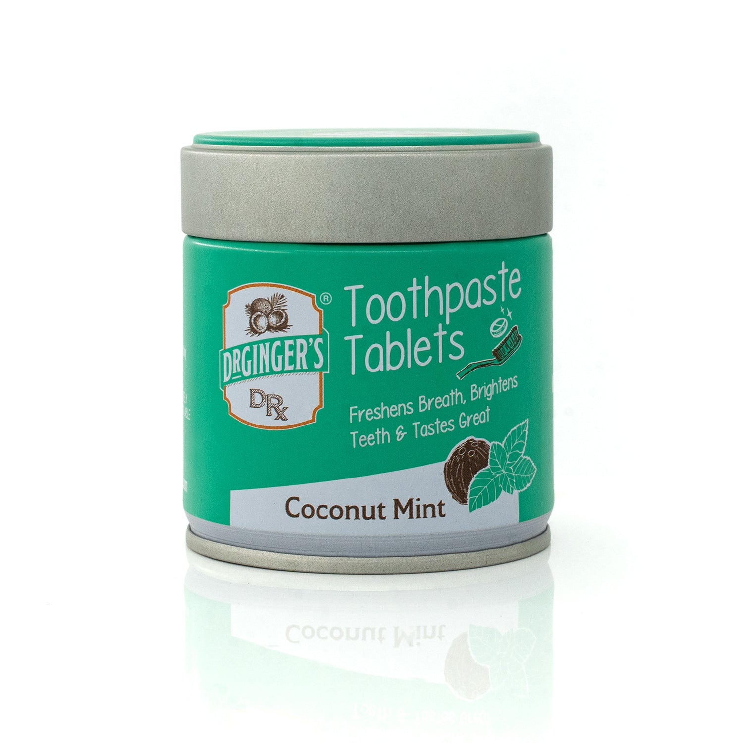 Toothpaste powder tablets! What’s the deal? Here at Dr. Ginger’s, we’re always innovating, and what we have here is the next best thing in oral care. Packed full of delicious coconuts and mint, our Coconut Powder Toothpaste Tablets have the same great taste and whitening power as our Original Coconut Oil Toothpaste, but with less packaging. Less packaging = less waste. So not only are our Coconut Powder Toothpaste Tablets good for your teeth, they’re good for our planet! Try Dr. Ginger’s Toothpaste Tablets for a good-looking smile (that you can feel good about, too)!